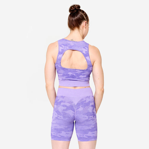 Imaginé pour les adeptes de musculation, ce crop tank tendance s\'adapte parfaitement à votre morphologie pendant l\'effort. Son imprimé camouflage et sa coupe équilibrée vous assurent un look affirmé, que ce soit en salle de sport ou au quotidien. Combinez- le avec le short assorti (ref 352971) pour un look complet alliant performance et style. Conçu pour tous vos entraînements : musculation, fitness, cardio...