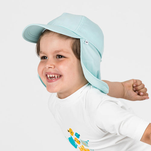 La casquette anti UV protège les bébés, même dans l'eau. Grâce à sa forme couvrante , elle abrite parfaitement la nuque et les oreilles pour qu'ils profitent pleinement des activités aquatiques.