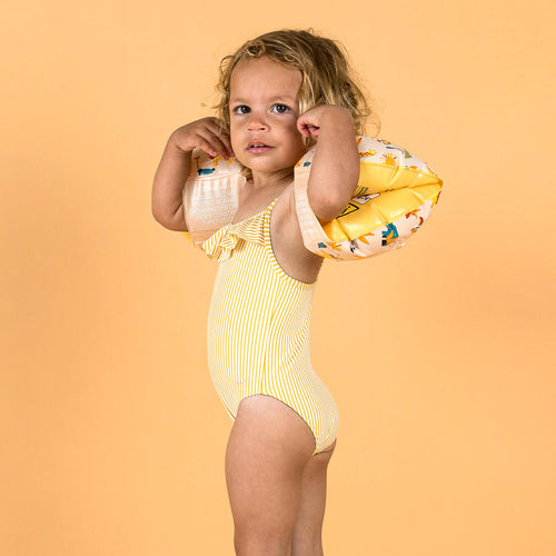 Maillot de bain 1 pièce conçu pour la petite fille qui découvre les plaisirs de l'eau en piscine ou en extérieur.