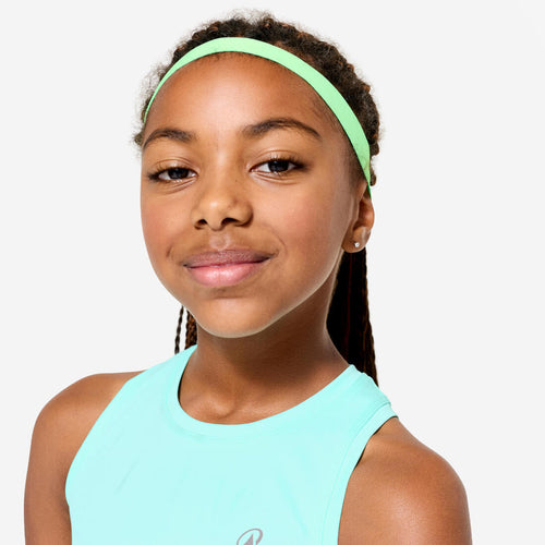 Pour ne pas être gênées par les cheveux dans les yeux, nous conseillons aux filles de porter un bandeau qui maintient les cheveux en arrière pendant tout le cours de sport. Bien le positionner de préférence derrière les oreilles, et jusque sur le haut du front sur les cheveux. Bon à savoir : les bandes silicones en forme de vague ne cassent pas le cheveu et facilitent le glissement lors de sa mise en place.