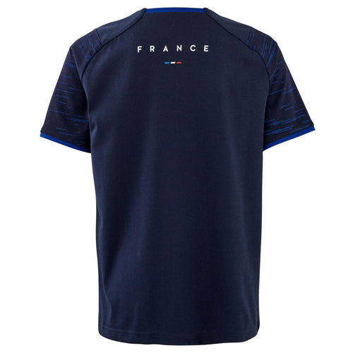 Au vu du prochain événement mondial de football, notre designer vous propose ce t-shirt FF100 aux lignes modernes, avec une coupe ajustée près du corps, et une nuance chinée sur le haut du t-shirt qui apporte une touche casual très élégante. Votre enfant va ainsi pouvoir porter fièrement les couleurs de son équipe.