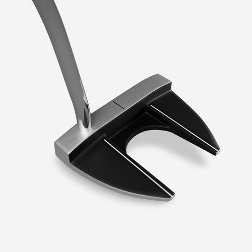 Le putter est un club essentiel. La majorité des golfeurs sur un parcours frapperont plus de 36 fois avec leur putter contre 14 fois avec leur driver ! Nous avons donc mis toute notre attention à la construction de ce putter 100 afin d’apporter aux joueurs qui débutent le golf, la tolérance nécessaire lors de leurs premiers parcours et de leur premier instant de putting. Nous avons préféré cette forme car elle tolère les coups décentrés.