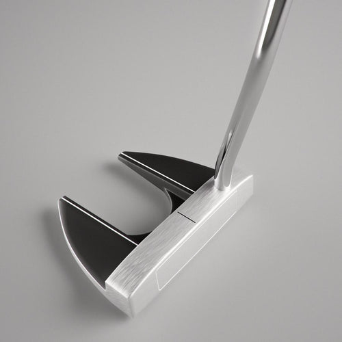 Le putter est un club essentiel. La majorité des golfeurs sur un parcours frapperont plus de 36 fois avec leur putter contre 14 fois avec leur driver ! Nous avons donc mis toute notre attention à la construction de ce putter afin d’apporter aux joueurs qui débutent le golf, la tolérance nécessaire lors de leurs premiers parcours et de leur premier instant de putting. Nous avons préféré cette forme car elle tolère les coups décentrés.