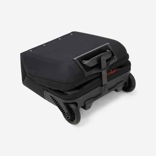 Du lourd à transporter, sur tous les terrains ? Ça roule pour elle ! En mode agile, sur des roues de trottinettes larges et solides. Des marches de métro à grimper, un tapis d’aéroport à charger ? Hop ! Vous reprenez la main aisément, avec une poignée réglable sur le haut et le côté – à vous de choisir, en mode valise ou sac de sport. Besoin d’une pause ? Posez-la au sol sans sourciller : son fond solide ultra stable tient la route et la distance.