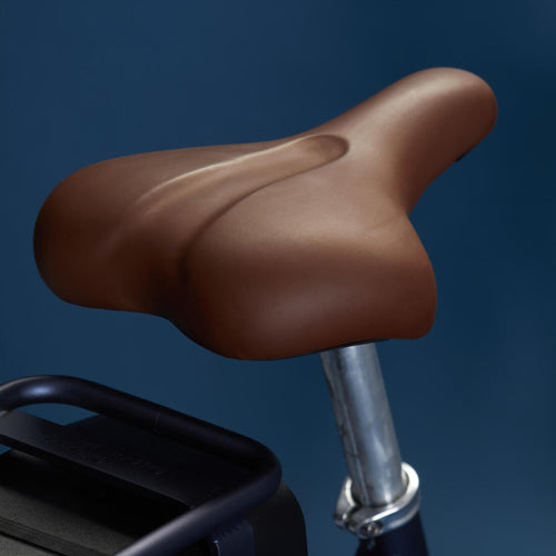 Tige de selle en aluminium (diam. 28,6mm). Selle large avec des mousses adaptées aux points de pression des fesses sur la selle. Possibilité d\'optimiser la position de la selle grâce au chariot réglable. Collier de selle (diamètre 34,9mm) verrouillé par vis pour éviter le vol opportuniste selle/tige de selle.