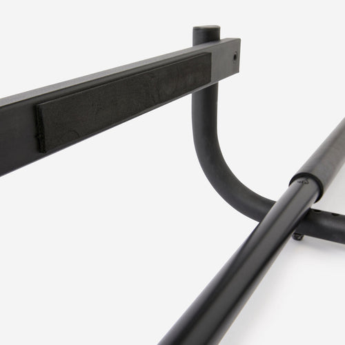 Pour peu qu\'elle soit bien montée et la porte bien fermée, le système d\'appui de cette barre de traction a été conçu et testé pour résister à vos séances de tractions les plus intenses. Résultat : vous pouvez enchainer les mouvements sans craindre que la barre ne tombe.