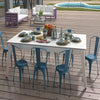 Piétement et châssis en acier galvanisé avec peinture blanche époxy – Cadre en polyéthylène gris – Drap Simonis 760 imperméabilisé, anti-tâches et muni d’une couche résistante aux UV. – Plateau table en Compac. – Ardoise véritable 1 partie