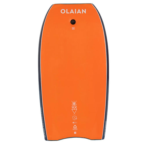 C\'est pour cela que ce bodyboard est doté d\'un pont ergonomique qui vous permettra de vous mettre spontanément dans la bonne position. Le leash (fourni )se fixe aussi bien au poignet qu\'au biceps (exclusivité Decathlon), selon votre préférence. Les indications sur la taille de l\'utilisateur et la taille de vagues sont précisées en permanence sur la planche. Un QR code sur le dessous vous permettra d\'accéder à des tutoriels et autres informations utiles : entretien, 2nde vie, etc.