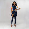 Le RIME 100 MC comprend 3 pièces : Haut de maillot : body ajusté avec des manches courtes et une coque intégrée Leggings de bain : Un legging qui assure la couvrance jusqu\'aux chevilles, et qui est élastique à la taille. Jupe : jupe amovible