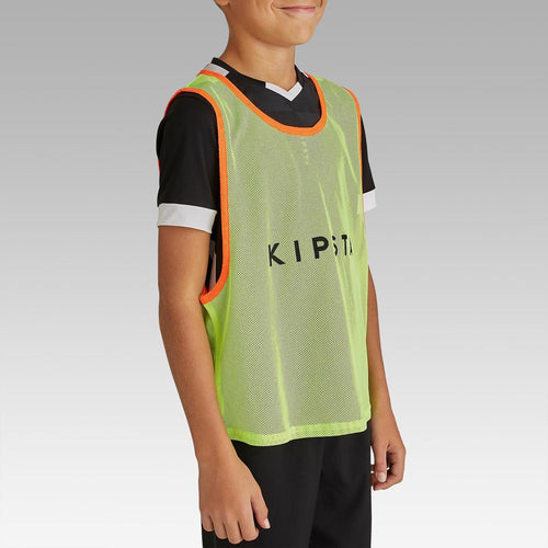 A photo of the Chasuble sports collectifs enfant jaune fluo in use