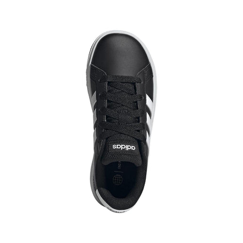 Ces chaussures adidas pour enfants, inspirées du tennis, ont un style classique pour le bitume ou la salle de classe. Les 3 bandes, la signature d’adidas, se démarquent sur le côté de la chaussure.