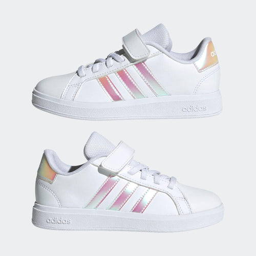 Ces chaussures Adidas Grand Court pour enfant sont parfaites pour un confort et un style unique, grâce à leur robustesse et leur tige en matière synthétique élégante.