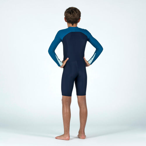 Avec ses manches longues et ses jambes courtes, cette combinaison de bain pour enfant couvre bien le corps pour nager et jouer dans l'eau. Elle est facile à enfiler grâce au zip sur le devant.