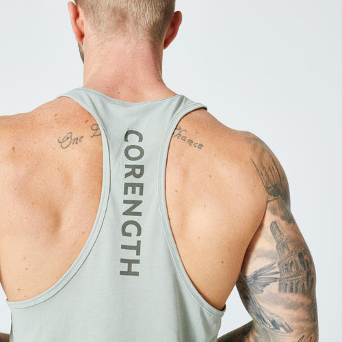Vous en avez assez de tirer sur votre T-shirt avant de faire vos tractions pour ne pas laisser apparaître votre ventre à la première rep... Ce sont vos épaules qui font monter votre T-shirt dès que vous levez les bras. Pour cela, le stringer est la solution ! Avec sa forme échancrée et son dos nageur, ce débardeur permet à vos épaules d\'être complètement libres pour éviter ce phénomène.