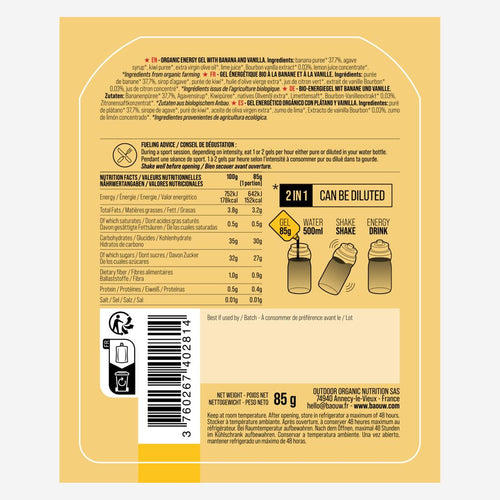Un gel énergétique apportant 30g de glucides, utilisable pur ou dilué dans 500ml d'eau !