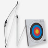 Poignée ergonomique de l\'arc convenant aussi bien aux droitiers qu\'aux gauchers. Arc ambidextre. Une seule taille d\'arc : Arc monté hauteur de 1m35, Band de 17,5 cm Tiller à zéro (17cm haut et bas de poignée) La cible mesure 49,8 X 49,8 CM. Installation : cible auto portée.