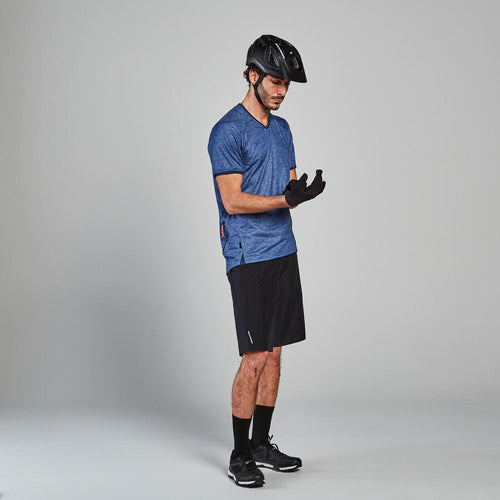 Ce maillot est à la fois sportif et décontracté grâce à son col en V et son effet chiné. Mais c\'est avant tout un vrai maillot de VTT ! Sa coupe et ses coutures sont conçues pour éviter les frottements et sont adaptées aux positions sur le vélo, afin de vous sentir le plus à l\'aise possible. Un exemple ? La longueur du maillot est adaptée pour couvrir tout votre dos, même quand vous vous penchez sur votre guidon.