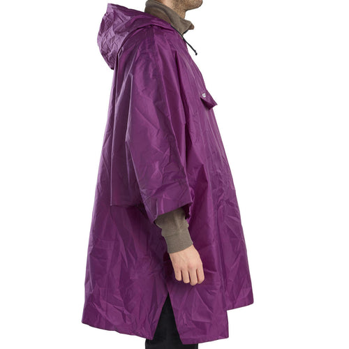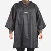 Grâce à sa couple ample, ce poncho vous permet de le porter par dessus votre veste ou votre pull, ainsi que par dessus un petit sac à dos de 20 litres notamment. Sa surface vous couvre de la tête aux cuisses, et les cordons de serrage vous permettent de l\'ajuster à votre tête. Lorsque la pluie cesse, vous n\'avez qu\'à ranger ce poncho dans la poche centrale de ce dernier. Voici les dimensions de cette poche : 23,5 cm X 20 CM