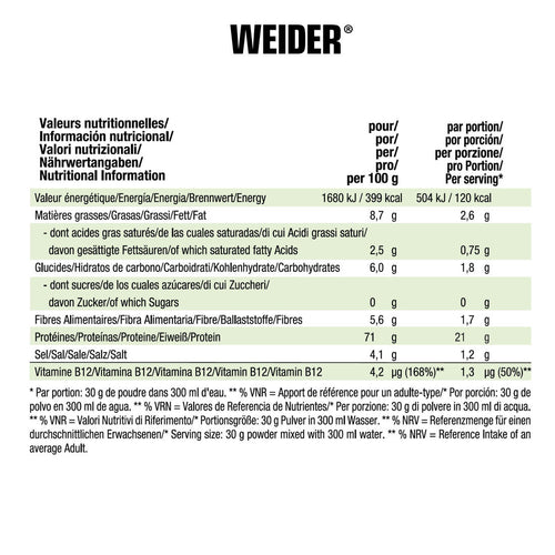 Protéine végétale propre, sûre et naturellement libre de lactose, gluten, cholestérol. La protéine principale de Vegan Protein est un isolé de pois (Pisane C9).
