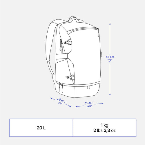 45 cm de hauteur, 25 cm de large et 15 cm de profondeur, ce sac à dos a les dimesions idéales pour partir en randonnée. Il peut aussi servir de sac cabine. Nous vous conseillons tout de même de vérifier les dimensions autorisées auprès de la compagnie aérienne avec laquelle vous comptez voyager.
