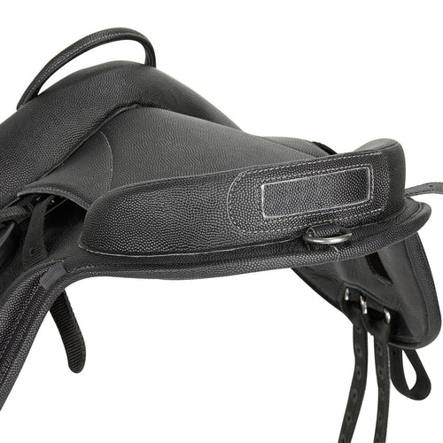 Notre bardette d'équitation 100 offre une excellente position aux jeunes cavaliers et s’adapte parfaitement à la morphologie des shetlands. Vendue équipée avec ses étrivières et ses étriers !