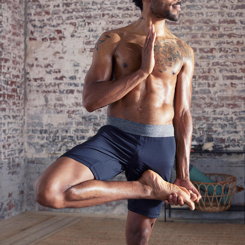 Notre équipe d'hommes pratiquant le hot yoga ou l'Iyengar nous ont aidé à concevoir ce short près du corps qui vous permet de progresser dans vos alignements.