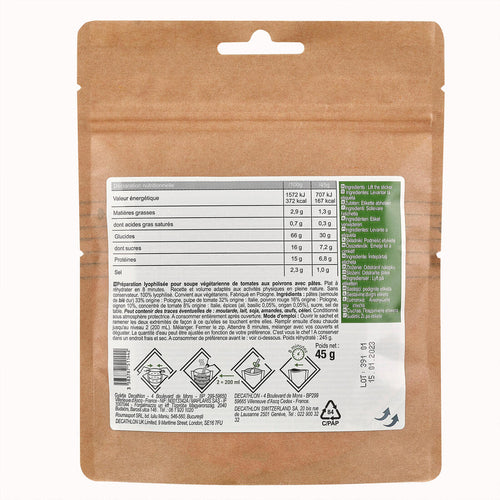 Notre équipe passionnée de trekking a conçu cette soupe lyophilisée pour vos activités physiques avec un apport énergétique adapté pour un poids minimal : 65 g.
