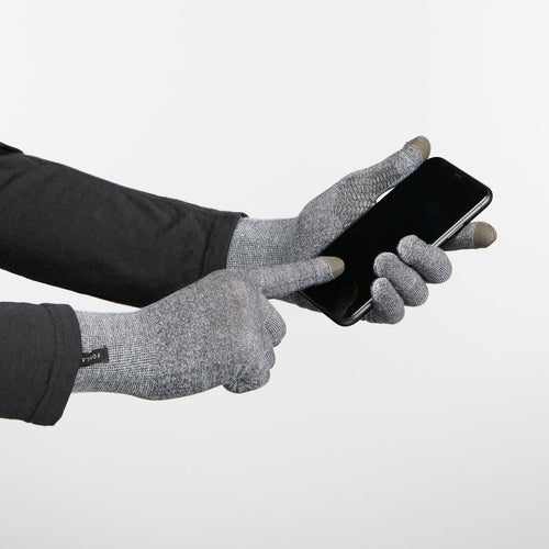 La matière conductrice sur pouces et index permet d\'utiliser un écran tactile