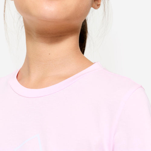 T-shirt de sport pour fille avec son logo Adidas, offrant confort et respirabilité. Un basique au look rose et blanc, parfait pour les jeunes sportives.