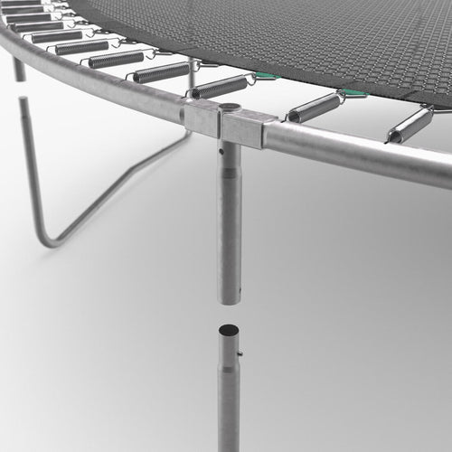 Les 88 ressorts à 29 spirales de 24 mm de diamètre et 141 mm de longueur ont une force de traction est de 57N. Associé à la toile de saut de 377 cm de diamètre, ils offrent une excellente qualité de rebond et confort de saut grâce à son absorption progressive. Ils sont adaptés pour convenir à un large spectre de poids de sauteurs, notamment les plus légers, afin de leur garantir un excellent confort d\'accueil, et cela, tout en offrant une très grande résistance pour les plus lourds d\'entre nous