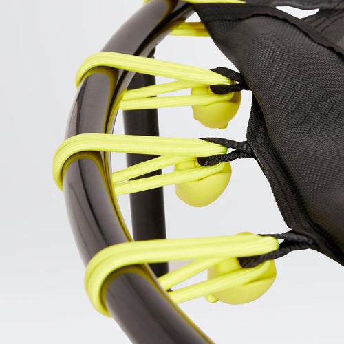 Le trampoline FIT TRAMPO500 est équipé de 24 élastiques pour un rebond dynamique et silencieux. Pour une pratique en toute sécurité, les élastiques sont recouverts d\'une toile synthétique.
